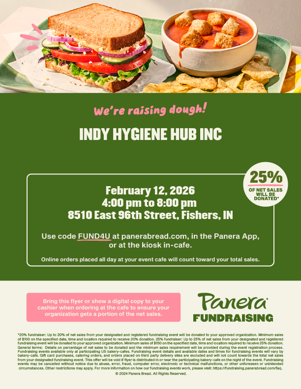 Support Indy Hygiene Hub by Dining at Panera Bread!
